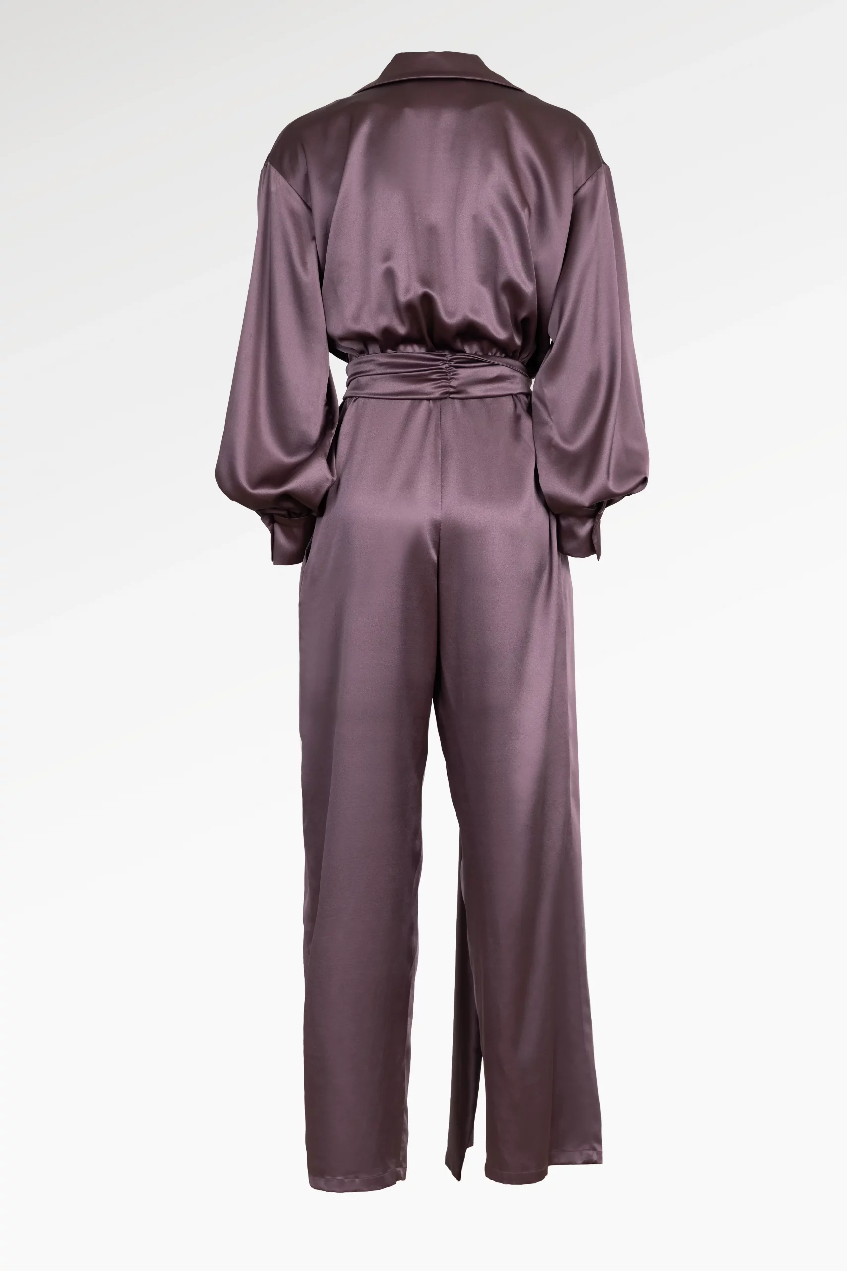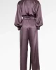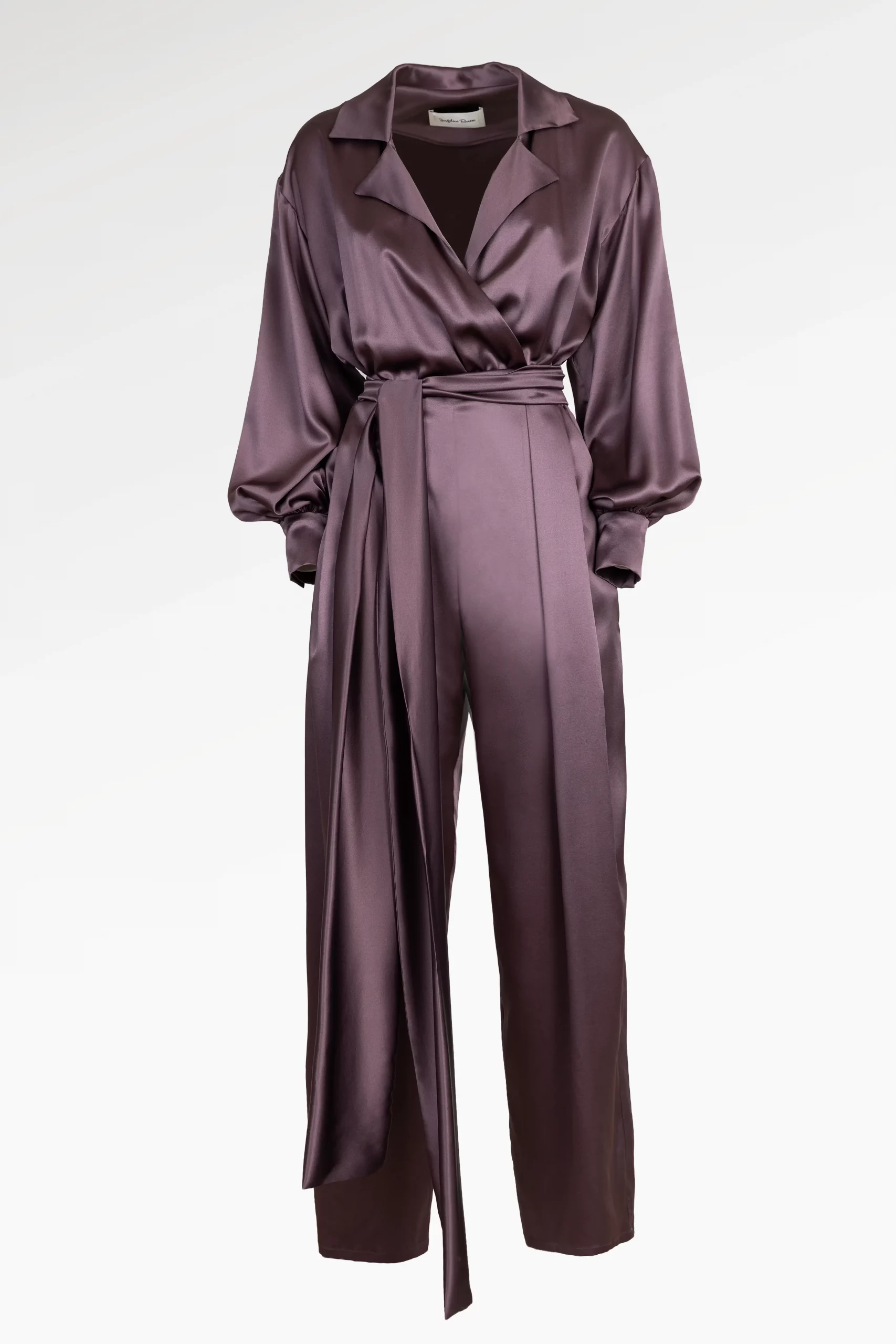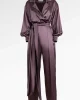Combinaison élégante à la coupe fluide et confortable, confectionnée dans du satin de soie stretch de haute qualité. Son haut cache-cœur croisé met en valeur le décolleté et souligne la taille grâce à une ceinture drapée amovible.