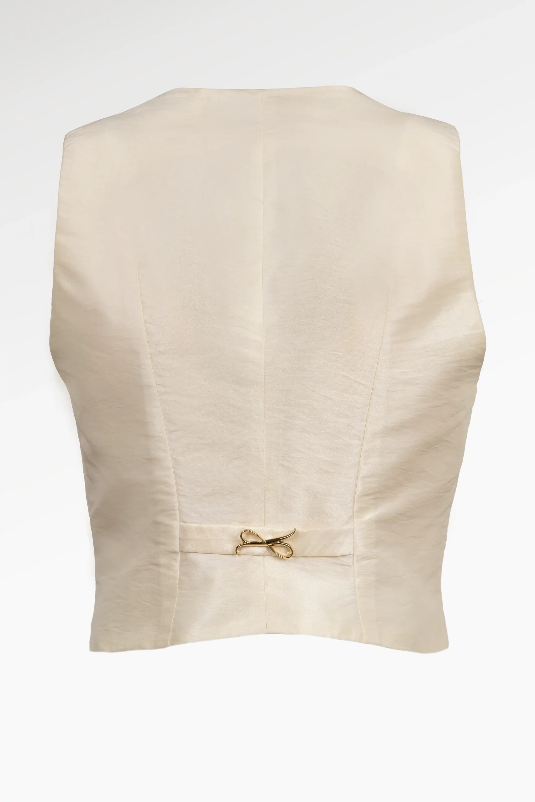 Le décolleté en V, épuré et moderne, met en valeur la silhouette avec une élégance discrète. Le dos est souligné d’une martingale ornée par un bijou JR doré. Il s’associe aussi bien à la jupe Orphée qu’au pantalon denim Allure JR.