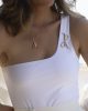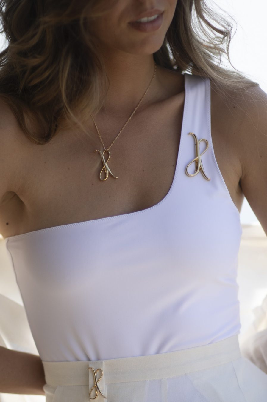 Maillot de bain une pièce asymétrique, doté d’une bretelle côté cœur ornée du logo JR en signature délicate. Sa coupe échancrée au niveau des hanches dessine une silhouette féminine.