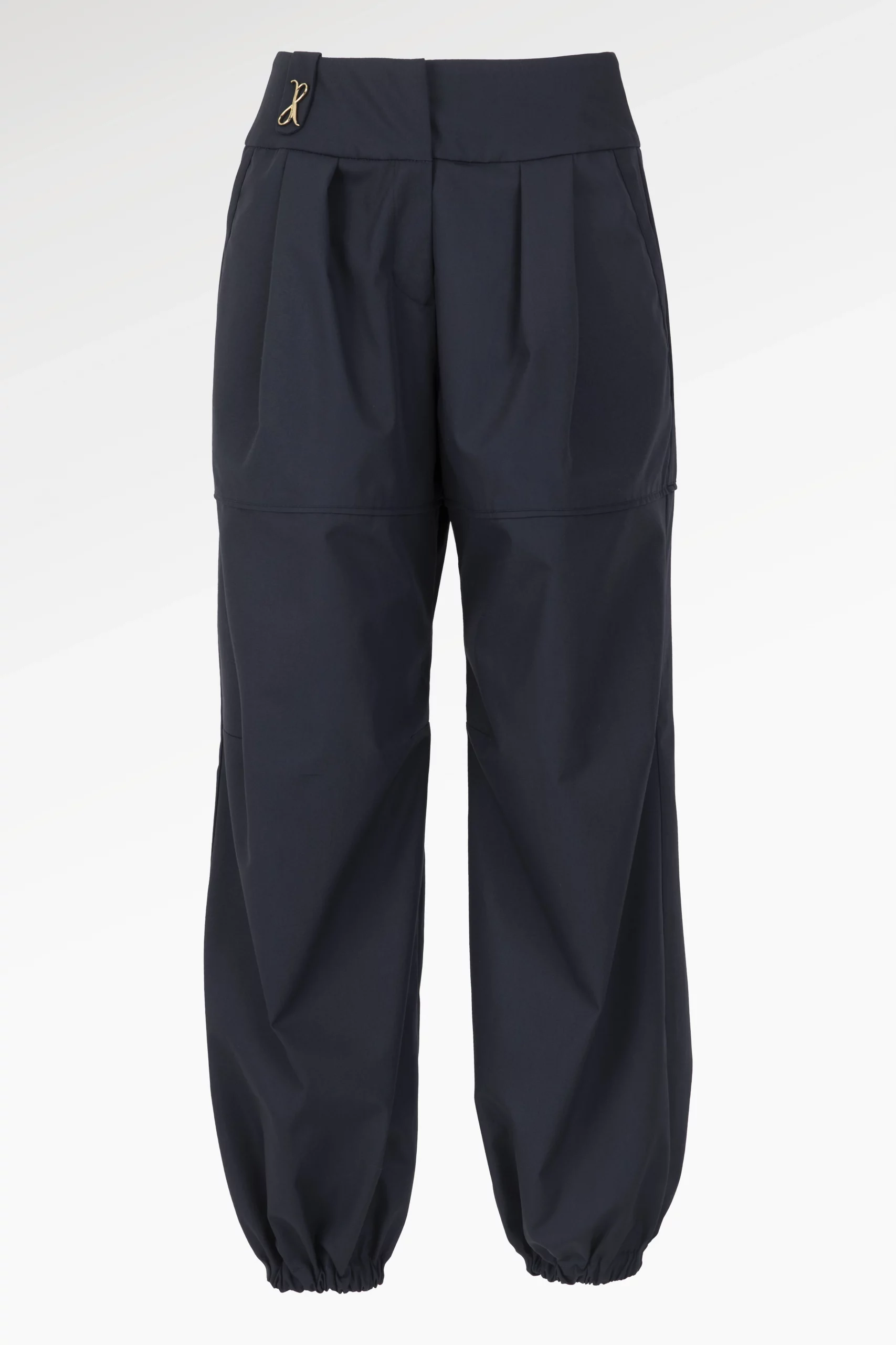 Pantalon large en gabardine, de coton et polyester, à l’allure décontractée-chic. Il est doté de larges poches à l’italienne sur les côtés et d’un bas élastiqué aux chevilles pour une silhouette moderne. Il se ferme sur le devant par une braguette et des agrafes, tandis qu’un passant unique orné du logo JR apporte une touche sophistiquée. Une pièce polyvalente, à porter aussi bien en ville que dans vos moments de détente.