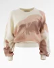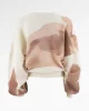 Pull à col rond coupe Oversize imprimé JR en fil de cachemire et de soie. Pull léger et chaud aux couleurs douces de la femme Joséphine Riviere. Le pull ALYSSA est court au niveau de la taille. Les emmanchures sont basses et les manches volumineuses. Bords finement côtelés.