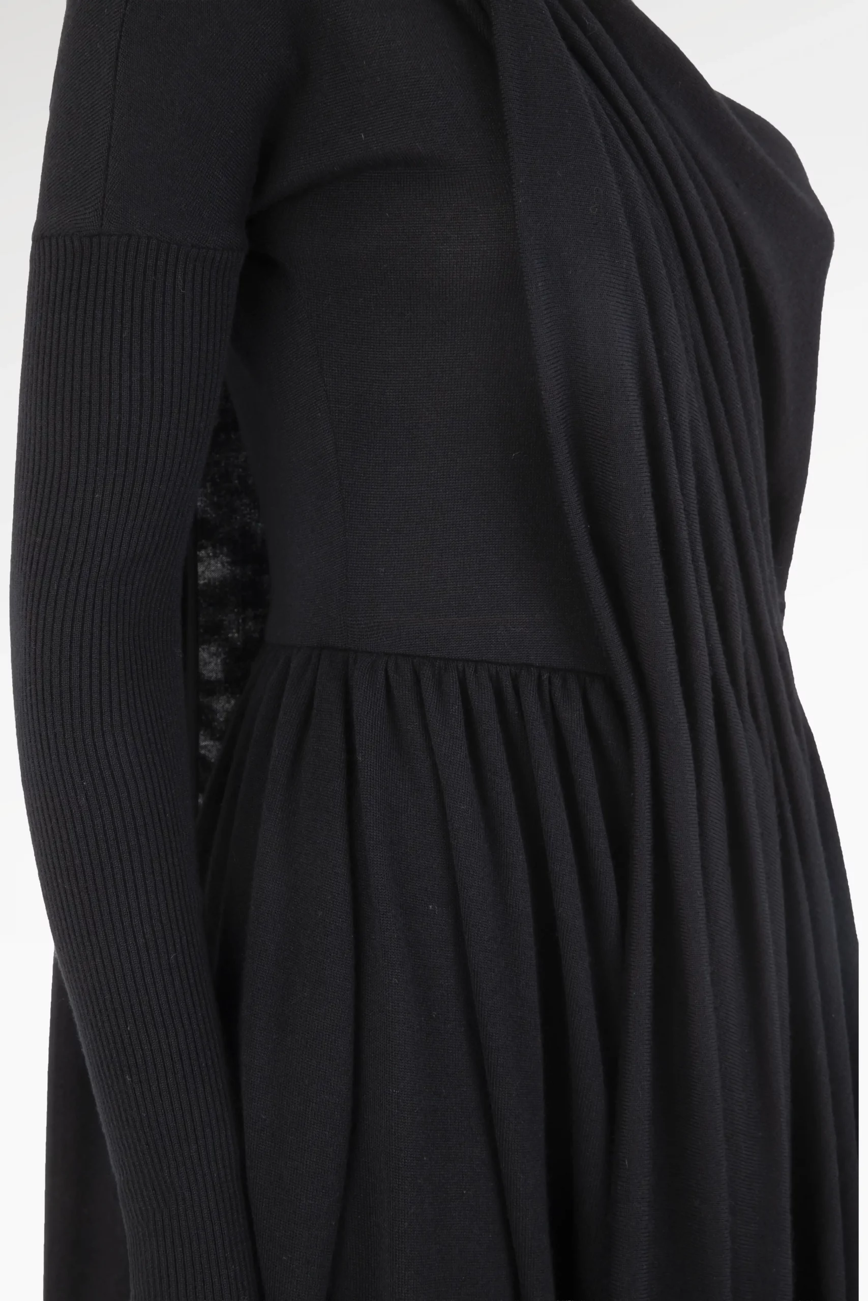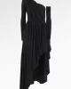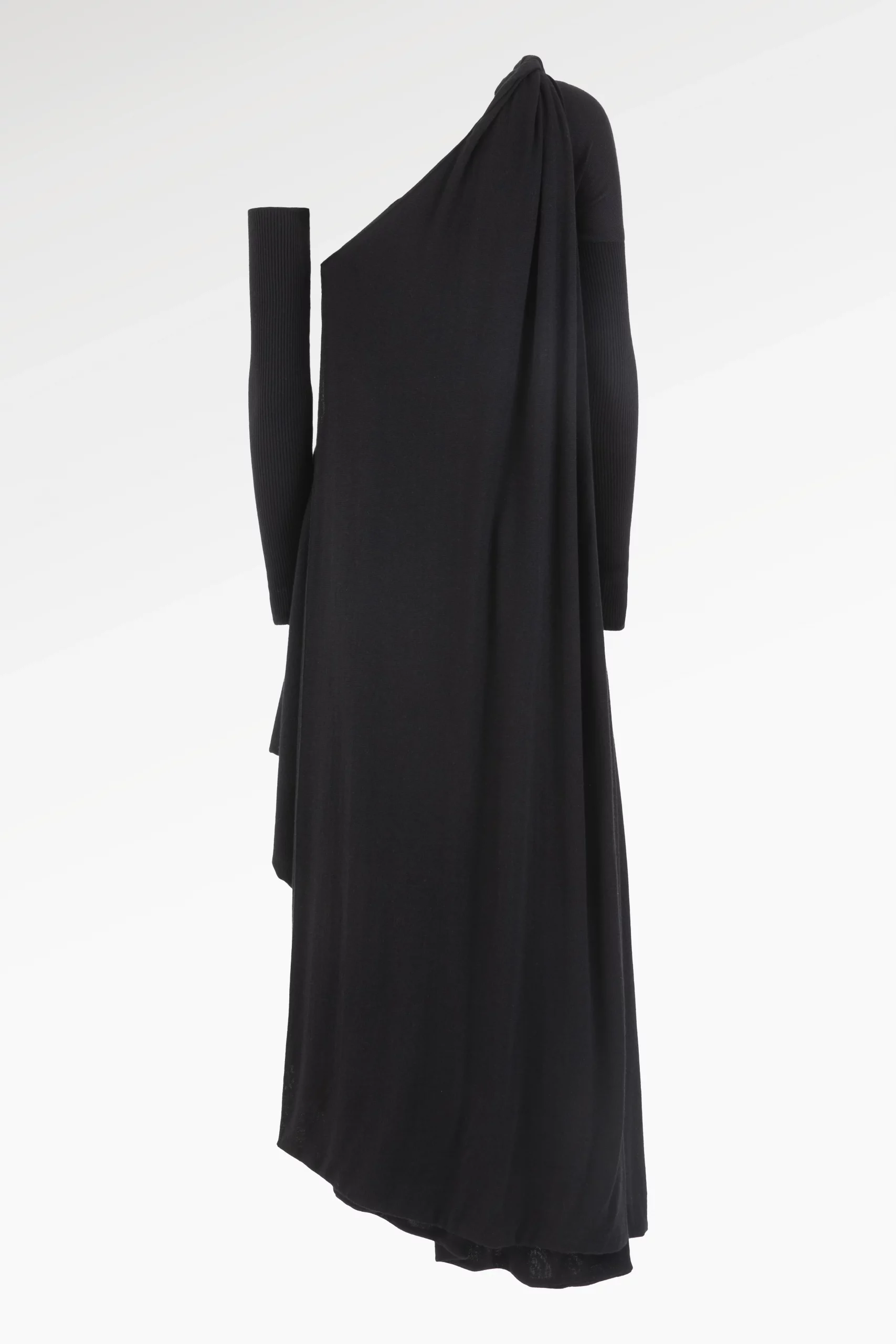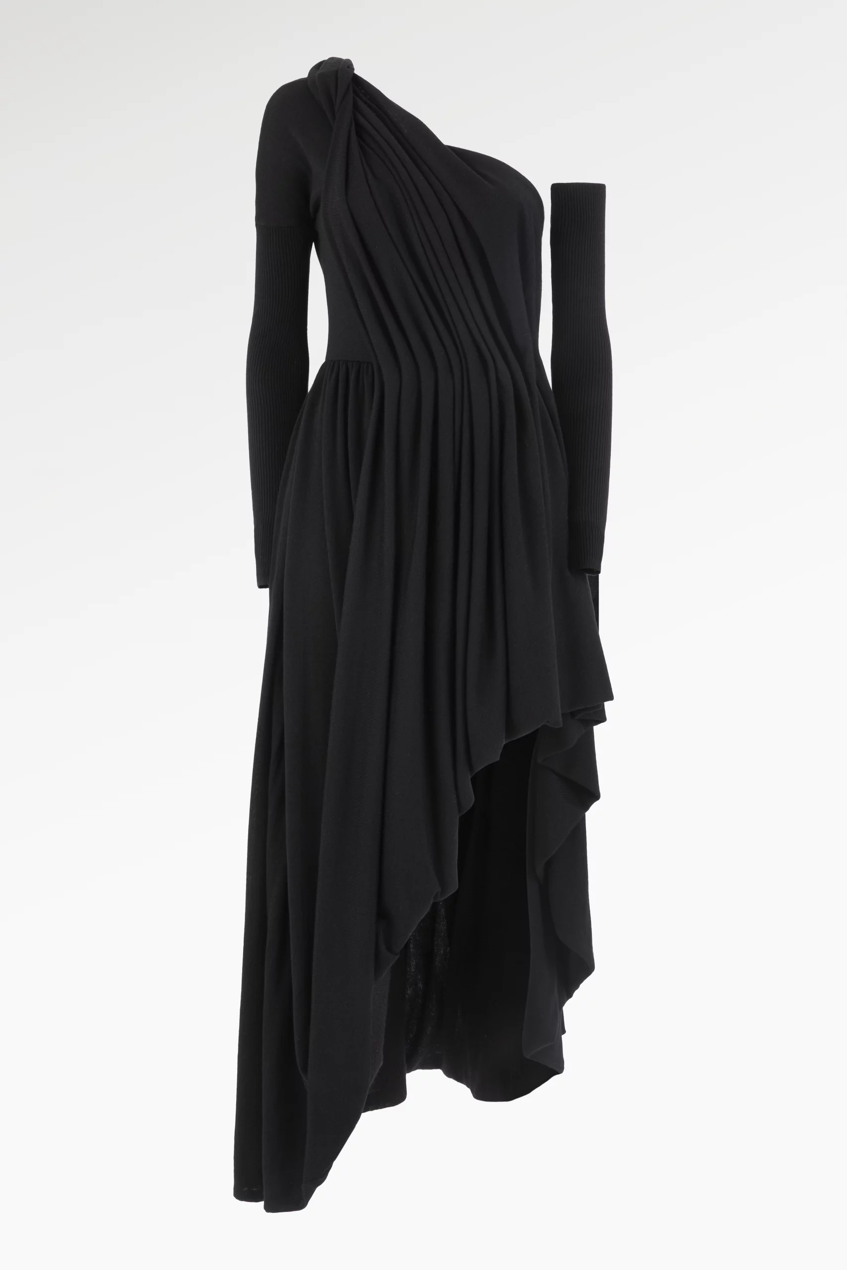 Robe longue asymétrique réalisée en fine combinaison de cachemire et de soie. Réalisée dans un jersey très fin, cette robe séduit par son jeu de drapés et son volume. La manche amovible d’un côté permet de dénuder entièrement une épaule ou le bras. Elle est ajustée au niveau de la taille pour flatter la silhouette. Elle s’enfile en douceur grâce à la fermeture invisible sur le côté.