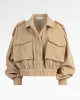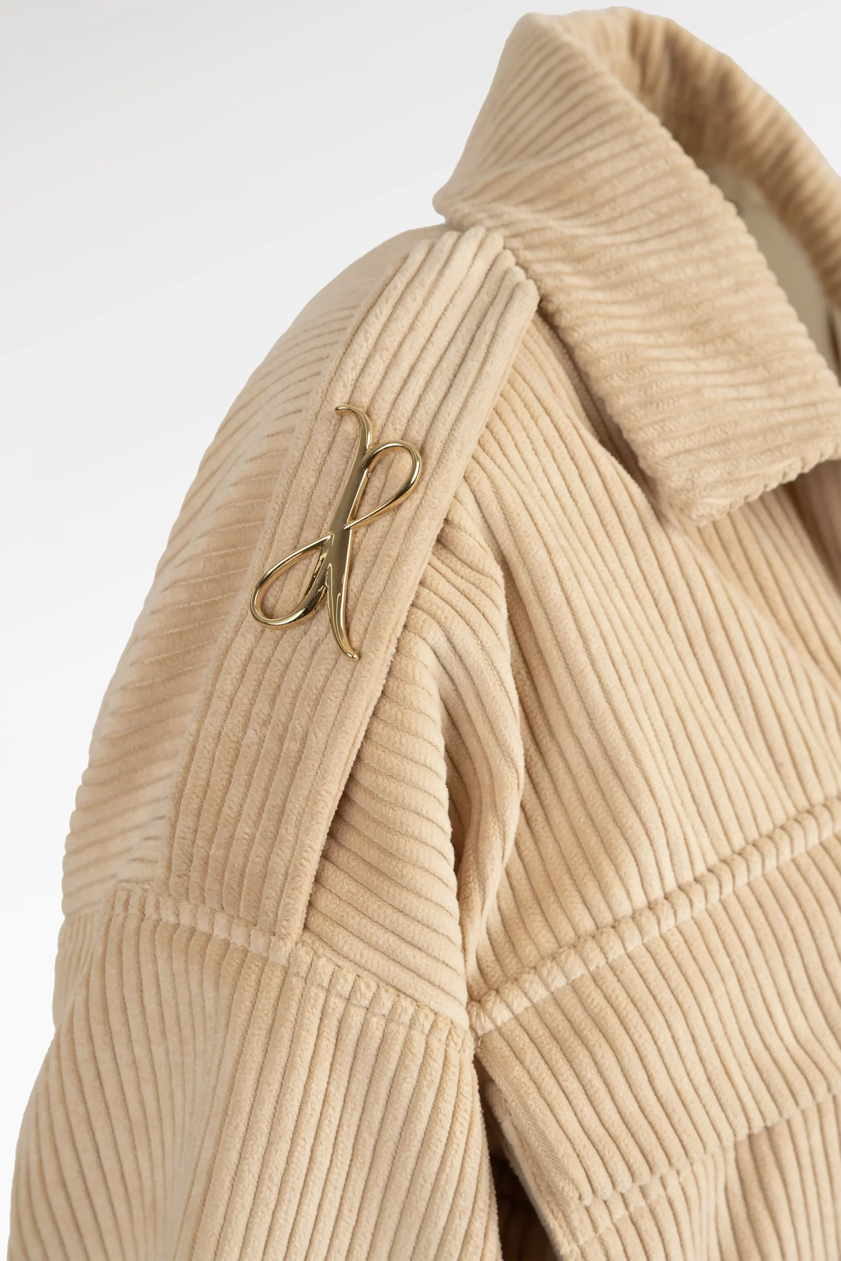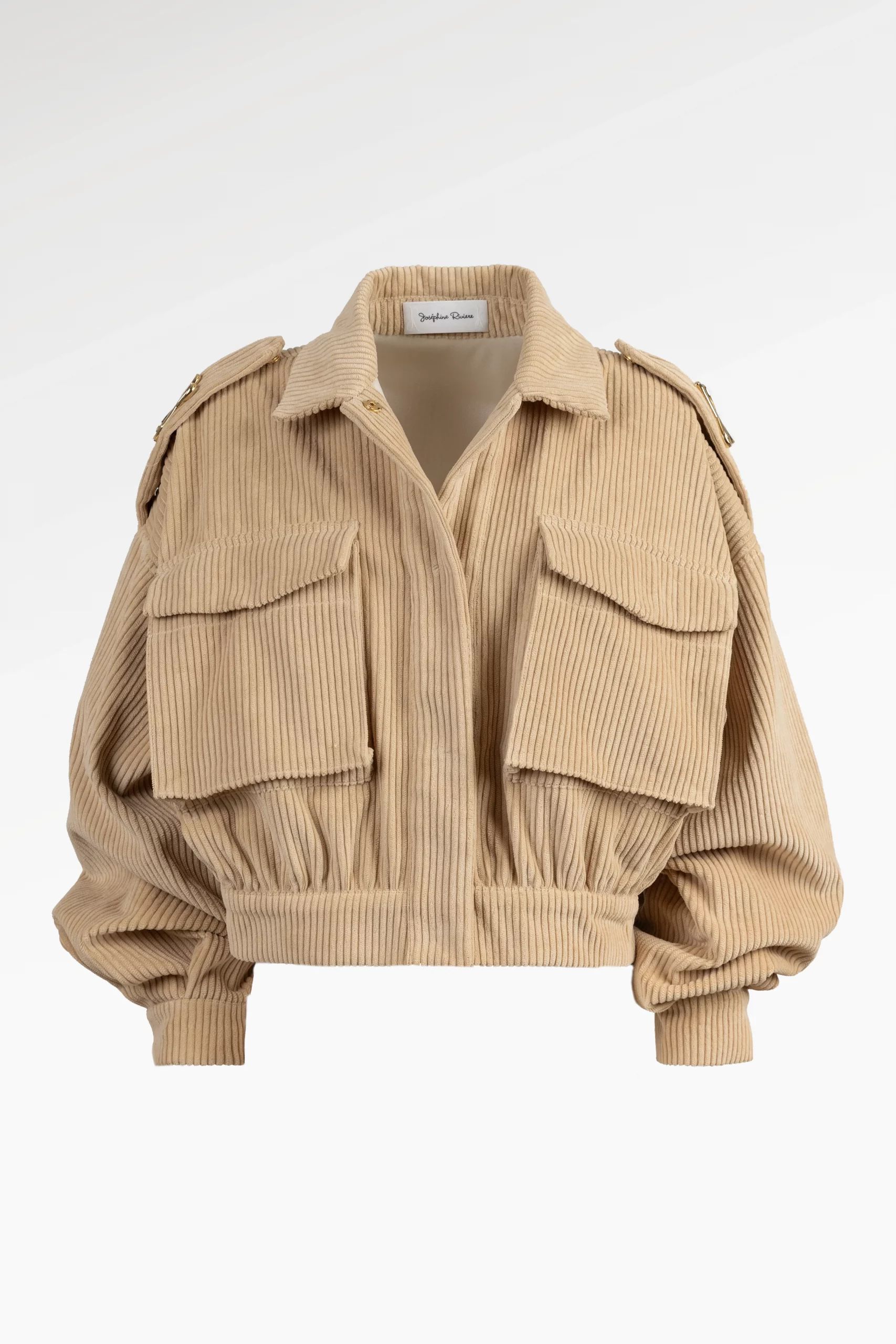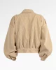 Veste beige courte façon bomber en velours côtelé, au volume maîtrisé et à la coupe délicatement structurée pour sublimer la silhouette. Les boutons pressions bijoux discrets et les pattes d’épaule ornées du logo JR apportent une touche lumineuse et raffinée. Une pièce à l’allure libre et sophistiquée, parfaite pour sublimer les silhouettes du quotidien.